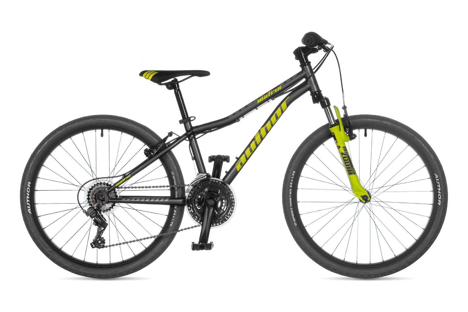 Бренд AUTHOR Модель 24 Matrix Год 2024 Серия Matrix Материал рамы Сталь (Hi-Ten) Рама/описание hi-ten 24 Тип вилки Амортизационная (пружина) Вилка/регулировки ZOOM (40 mm) Диаметр колес 24" Обода alloy 32 holes Резина AUTHOR Speed Master 24' ? 1.75 Тормоза Ободные (V-brake) Тормоз TEKTRO V Уровень оборудования Любительский Шифтеры SHIMANO Revoshift (18) Переключатель передний SHIMANO TY500 (28.6) Переключатель задний SHIMANO TY200 Кассета SHIMANO MF-TZ510-6 14-28 (6) Цепь KMC Z6 Каретка VP COMP cartridge Шатуны PROWHEEL 42-34-24 teeth 152 mm cranks Количество скоростей 18 Руль steel 20 mm 580 mm Рулевая колонка PRESTINE 1-1/8 Вынос Alloy Седло AUTHOR Подседельный штырь alloy (25.4) Педали resin Втулка передняя steel 32 holes Пол/возраст Мужской Грипсы длина/тип AUTHOR kratton rubber -